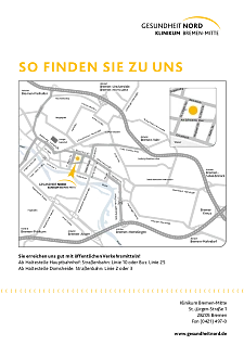 Standort-/Lage- bzw.Anfahrtsplan finden Sie hier: Lageplan zur Anfahrt ins Klinikum Bremen-Mitte